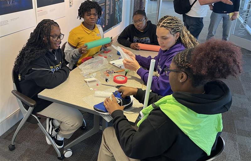Girls Day Out invites eighth and ninth grade girls from schools in Mecklenburg County to spend a full day immersed in science and engineering, including IMAX screenings, guest speakers and hands-on design challenges. Students put their skills to the test with activities like prototyping prosthetic legs, gaining critical thinking experience and insight into biomedical engineering careers.